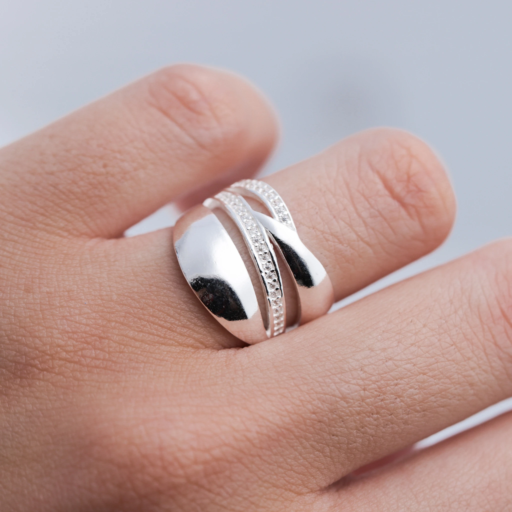 Un anillo de plata deslumbrante que irradia elegancia y simplicidad. Hecho con plata de alta calidad, este anillo destaca por su brillo sutil y su diseño minimalista. Su forma suave y líneas limpias capturan la esencia de la sofisticación moderna. Es el accesorio perfecto para agregar un toque de estilo refinado a tu atuendo diario, sin esfuerzo y con distinción.