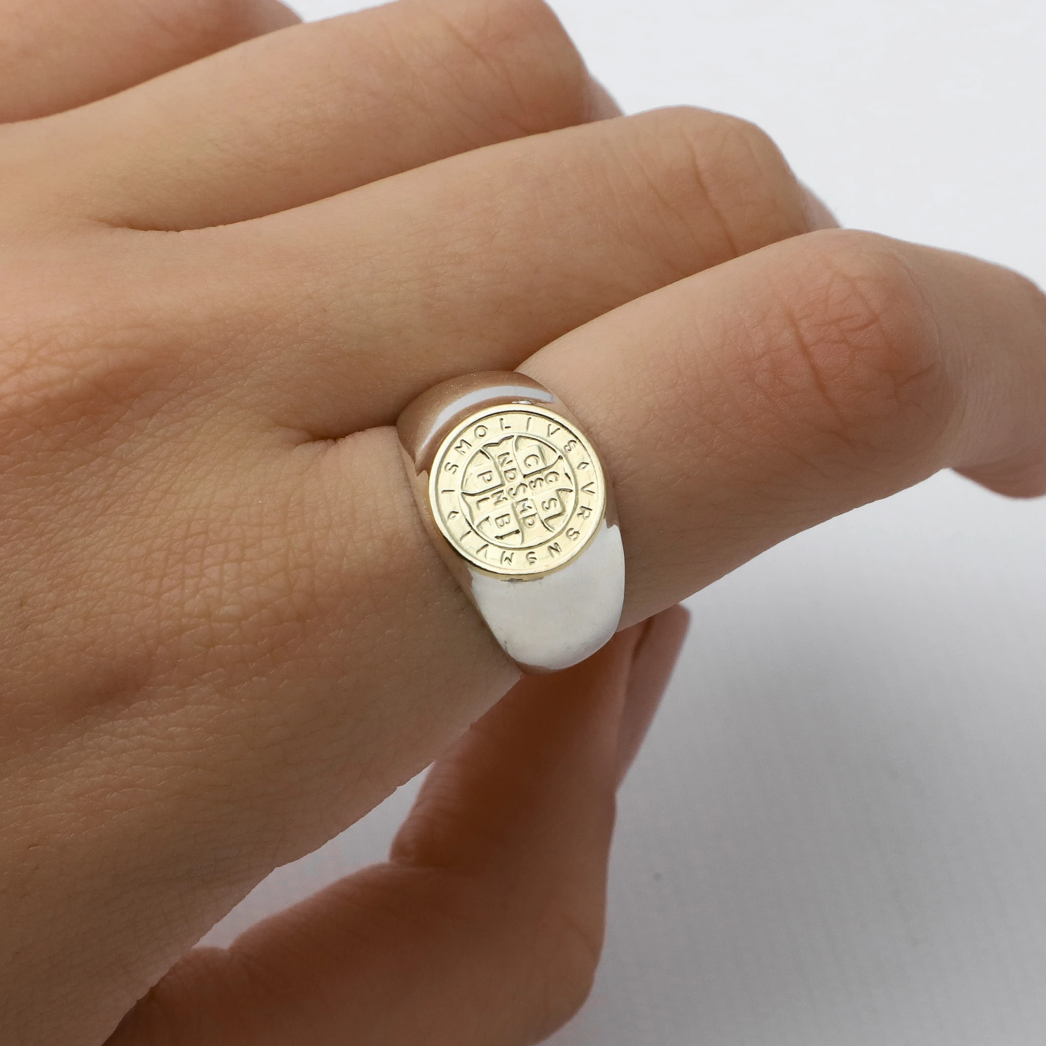 ANILLO SAN BENITO PLATA CON ORO