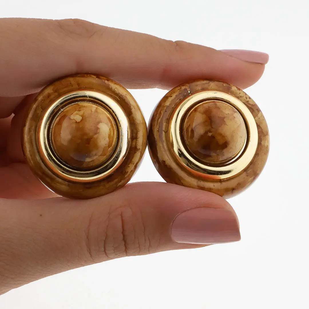 Descubre nuestros aros clip, una opción ideal para quienes buscan elegancia sin necesidad de perforaciones. Con un diseño atemporal y cómodo de llevar, destacan por su acabado dorado y su centro en tono marmolado que aporta un toque sofisticado y distintivo. Perfectos para ofrecer a tus clientes accesorios versátiles, resistentes y llenos de estilo.