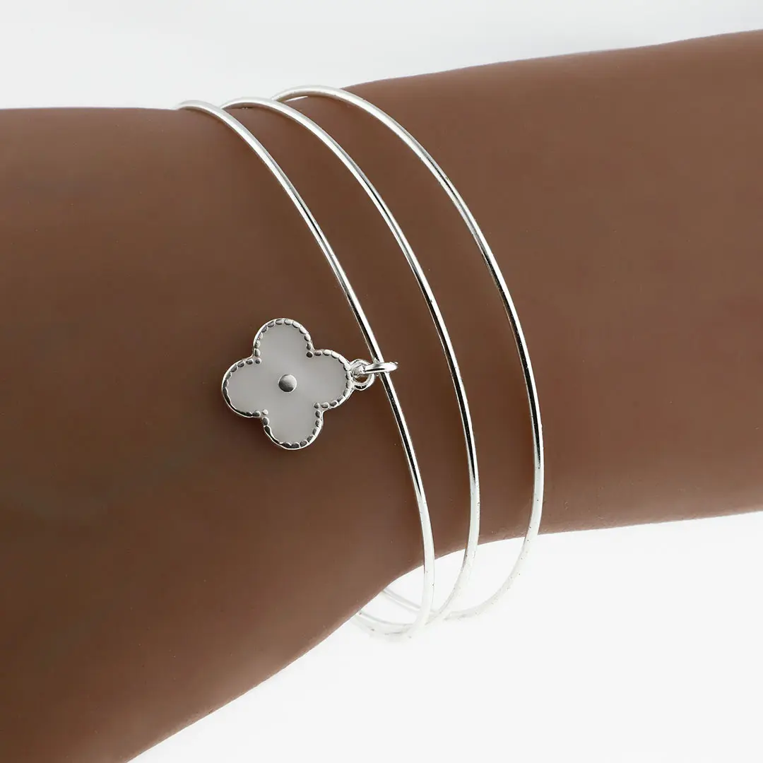 PULSERA TREBOL ACERO BLANCO